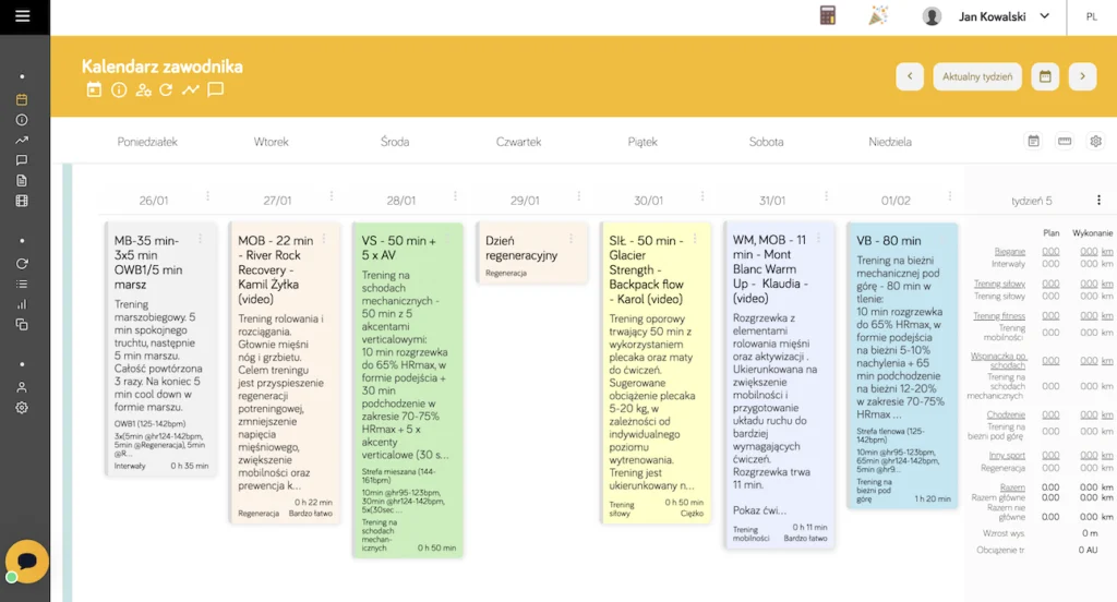 ● Regularne wsparcie trenera w zakresie budowania celów sportowych i górskich.